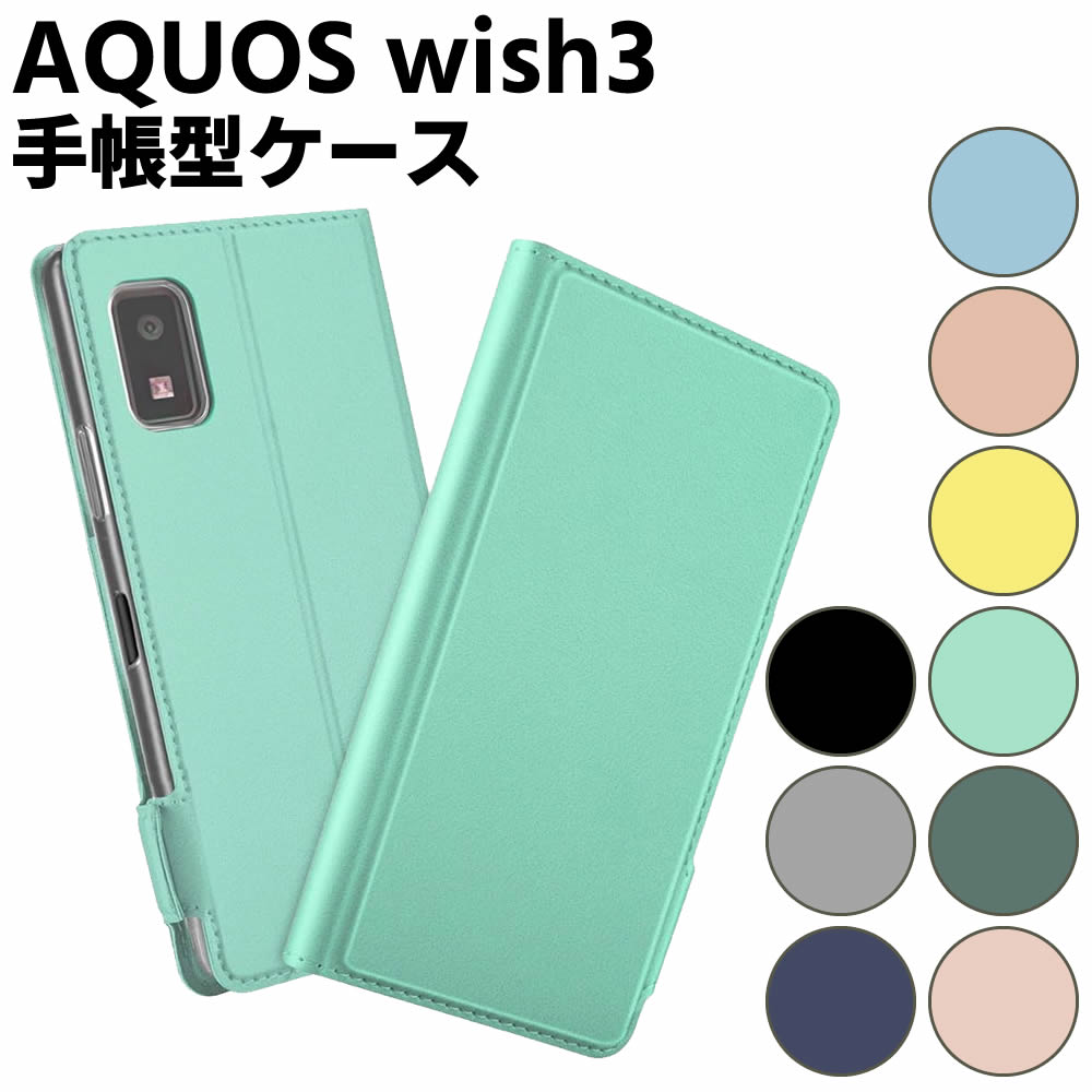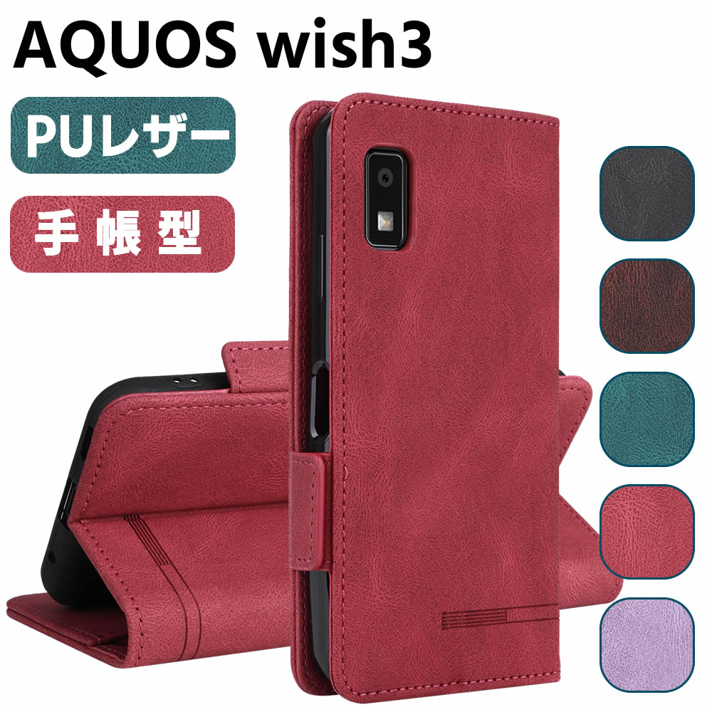 AQUOS wish3 五金PUレザー手帳ケース